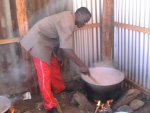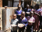 Right now they get a mug of sweetened maize porridge in the morning at 10 am and a meal later in the day. It resembles a type of stew containing beans cooked with either rice or potatoes. Sometimes they get a banana.